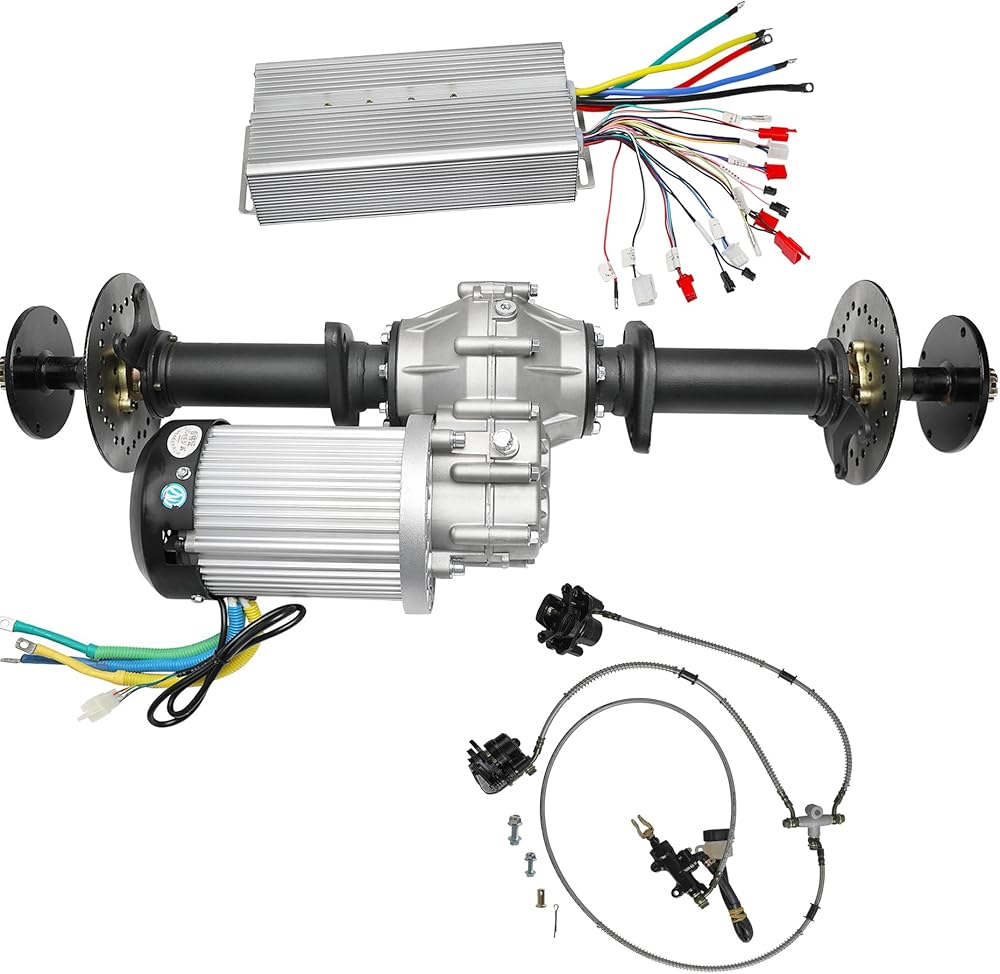 This Differential Axle Kit is designed for high-performance electric vehicles, including go-karts, golf carts, ATVs, buggies, and trikes. At the heart of the kit is a 60V 2500W brushless motor with a differential gearbox, delivering a robust rated speed of 5000RPM and a maximum speed of 6000RPM. The 12:1 gear ratio and 400N.m torque provide exceptional power and reliability, capable of handling loads up to 1500lbs.