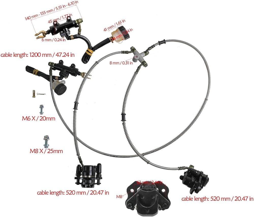 The 810mm (32-inch) drive axle features a sturdy 25mm diameter with a 6-tooth spline, ensuring durability and stability. The package also includes essential components such as 2x brake discs, 2x short axles, 2x 4-stud wheel hubs (110mm bolt spacing), and a foot brake caliper assembly, making it compatible with a wide range of electric vehicle setups.