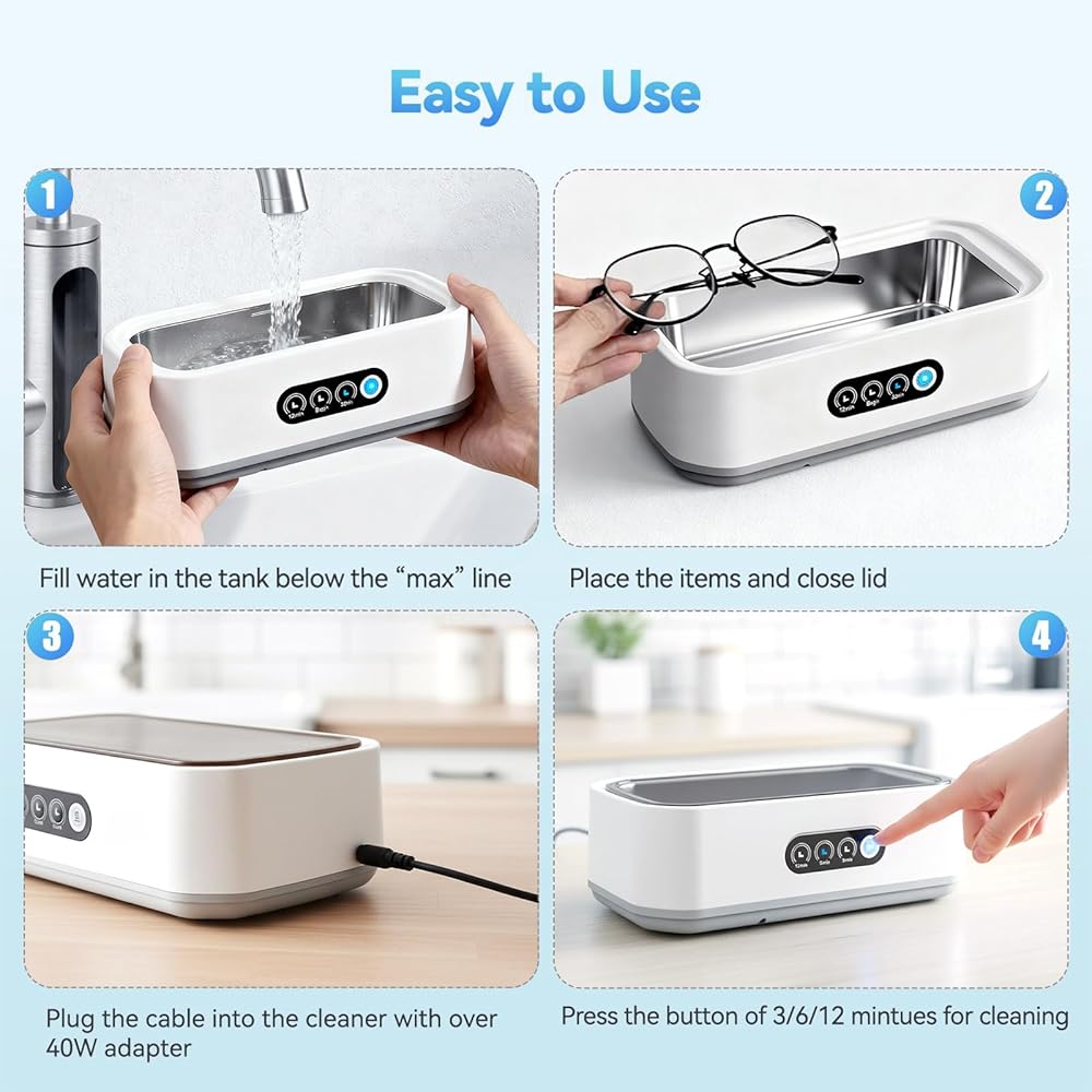 【49KHz High-Frequency Ultrasonic Cleaning】Equipped with advanced 49kHz ultrasonic technology, this jewelry cleaner generates powerful yet gentle waves to penetrate intricate details, removing dirt, dust, grease, and grime from gold,silver,necklace,diamond ring,glasses,eyeglass,watches,dentures,retainers,and makeup brushes within minutes. No need for professional cleaning—restore brilliance at home effortlessly.