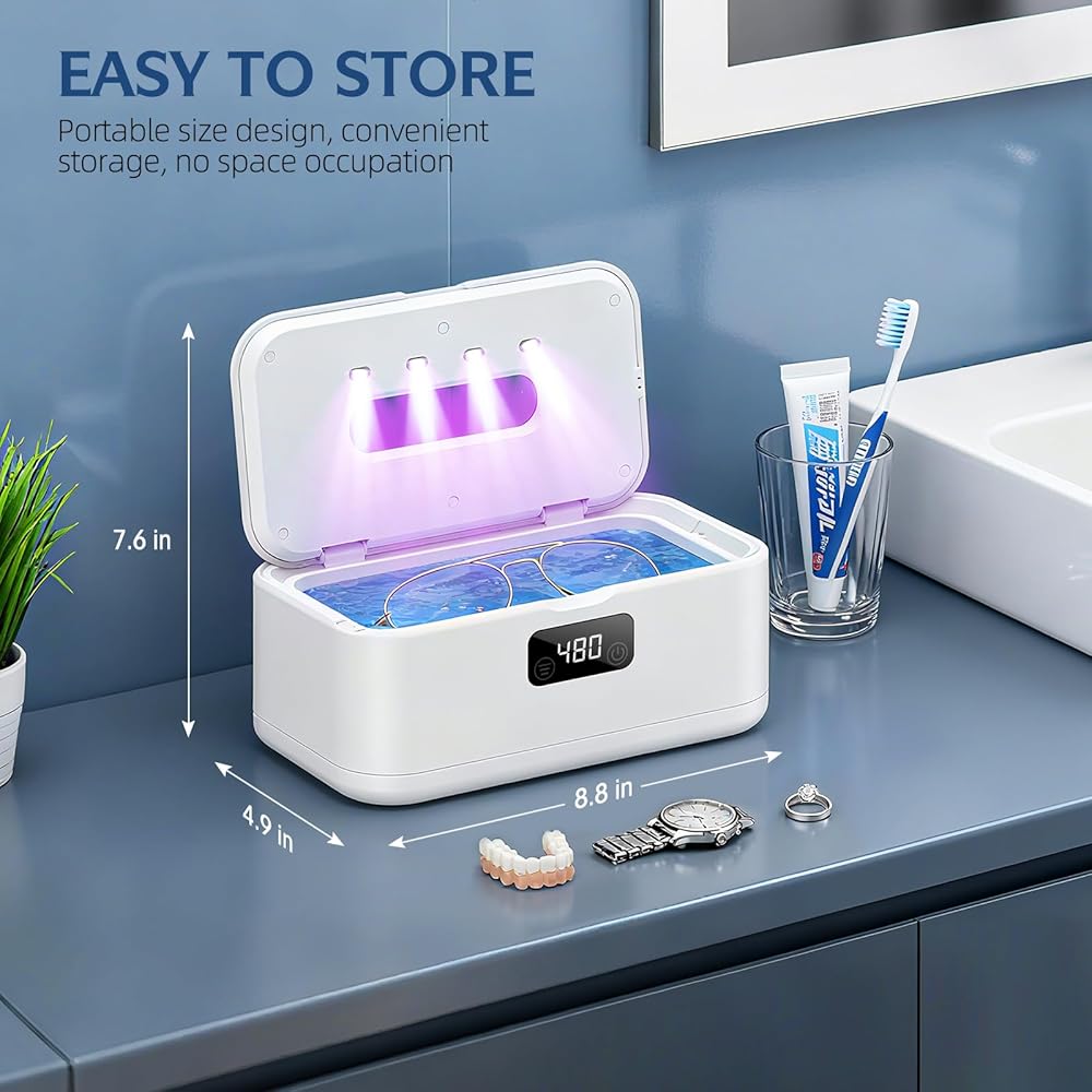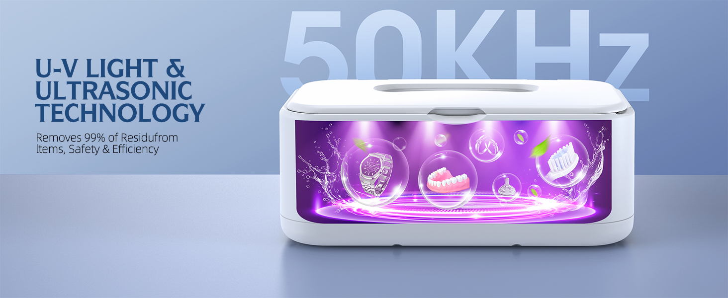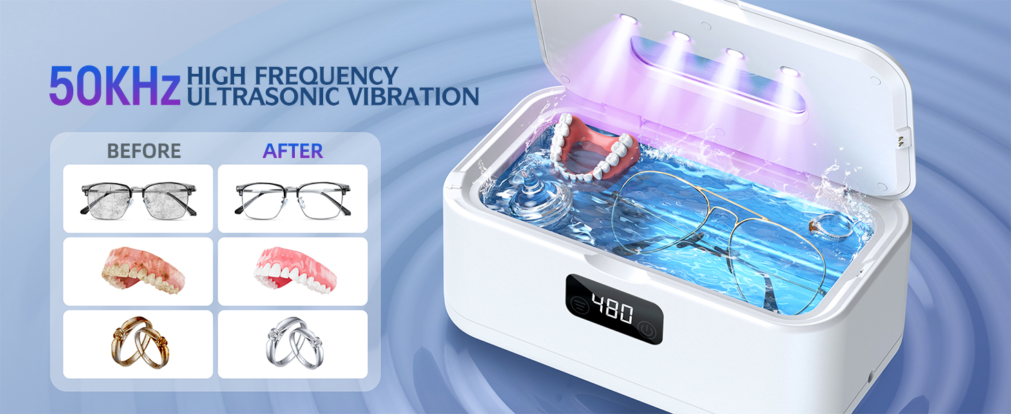 Dual-Intensity Cleaning - This jewelry cleaner combines 50kHz high-frequency ultrasound with UV light technology. The powerful microbubble cavitation penetrates intricate designs to effectively remove surface oils and grime, restoring your items' original shine