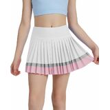 All-in-One Convenience with Built-In Shorts: Girls athletic skort combines a stylish colorblock tennis skirt with attached inner shorts, eliminating the need for separate layers and providing secure coverage during active play.