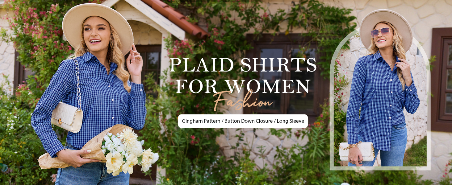 Soft Cotton Fabric: This cotton plaid shirts for women uses a skin-friendly cotton fabic—soft, lightweight, and breathable. Used alone in spring/summer, the gingham top keeps you fresh; layered under sweaters in autumn, it adds coziness