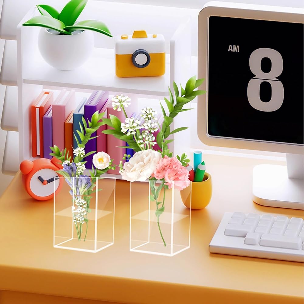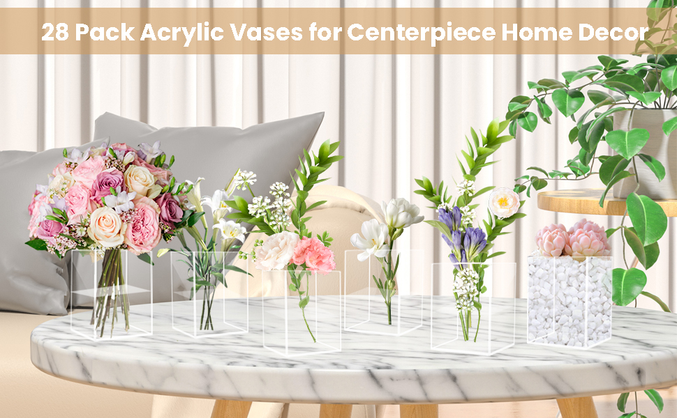 【Durable & Leak-proof】: Our square acrylic vases are made of acrylic material, which is lightweight, durable and not easily broken, making it safer than glass vases. The bottom adopts strict sealing craftsmanship to effectively prevent water leakage.