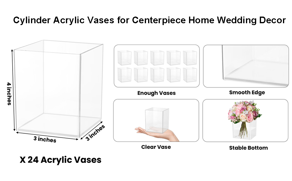 【Wide Application】: Our acrylic vases can not only decorate flowers, but also grow succulents, hold candles, serve as a fish tank and for various other purposes. Cylinder acrylic vases are perfect for decorating counters, bookshelves, living rooms, offices, restaurants, hotels, bedrooms, dining tables, meeting rooms, wedding, and more.