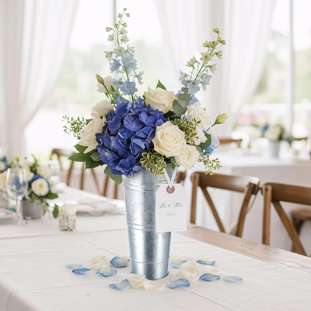 Versatile & Stylish Flower Vase: These rustic vases for flowers are designed to elevate your floral arrangements, making flower buckets perfect for flower bar events or as charming centerpieces. Their versatile nature allows tin buckets to seamlessly blend into any setting, whether you're hosting a casual gathering or a formal event. The timeless design of this flower bucket adds a touch of sophistication, enhancing the beauty of your flowers and creating a captivating display.