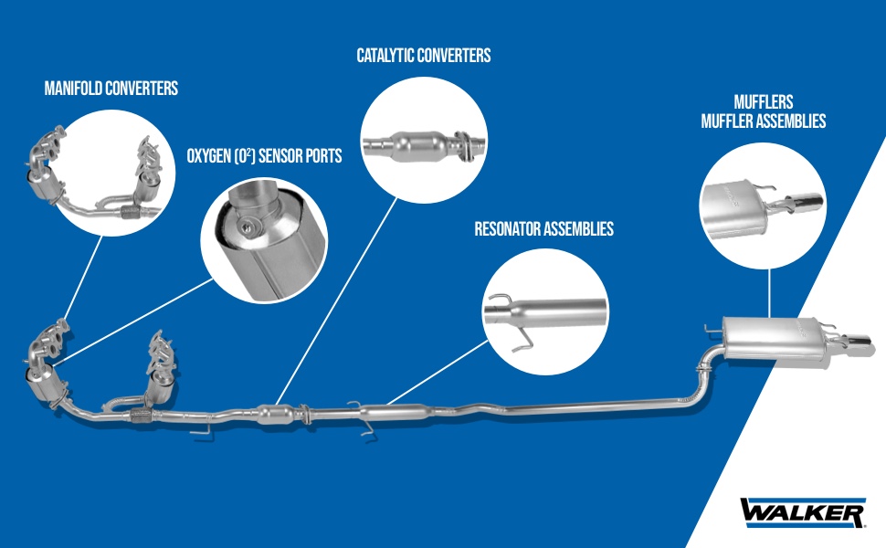 Featuring 100% aluminized steel for longer service life compared to low-carbon steel, Walker SoundFX® direct-fit mufflers deliver quality appearance and favorable acoustics while mechanical interior joints and spun-locked heads provide durability.