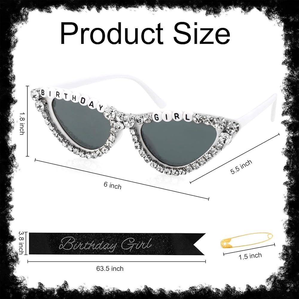 All-in-One Birthday Sash and Crown Set This birthday sash and crown set includes a birthday sash, birthday girl crown, sunglasses headband, and birthday girl pin. Perfect for birthday party decorations, birthday party supplies, funny birthday decorations, and standout birthday accessories for women and girls.