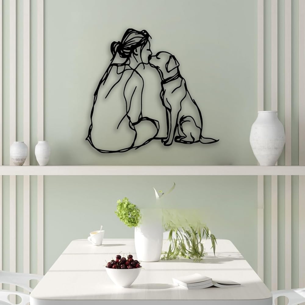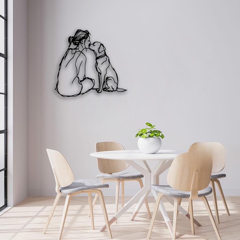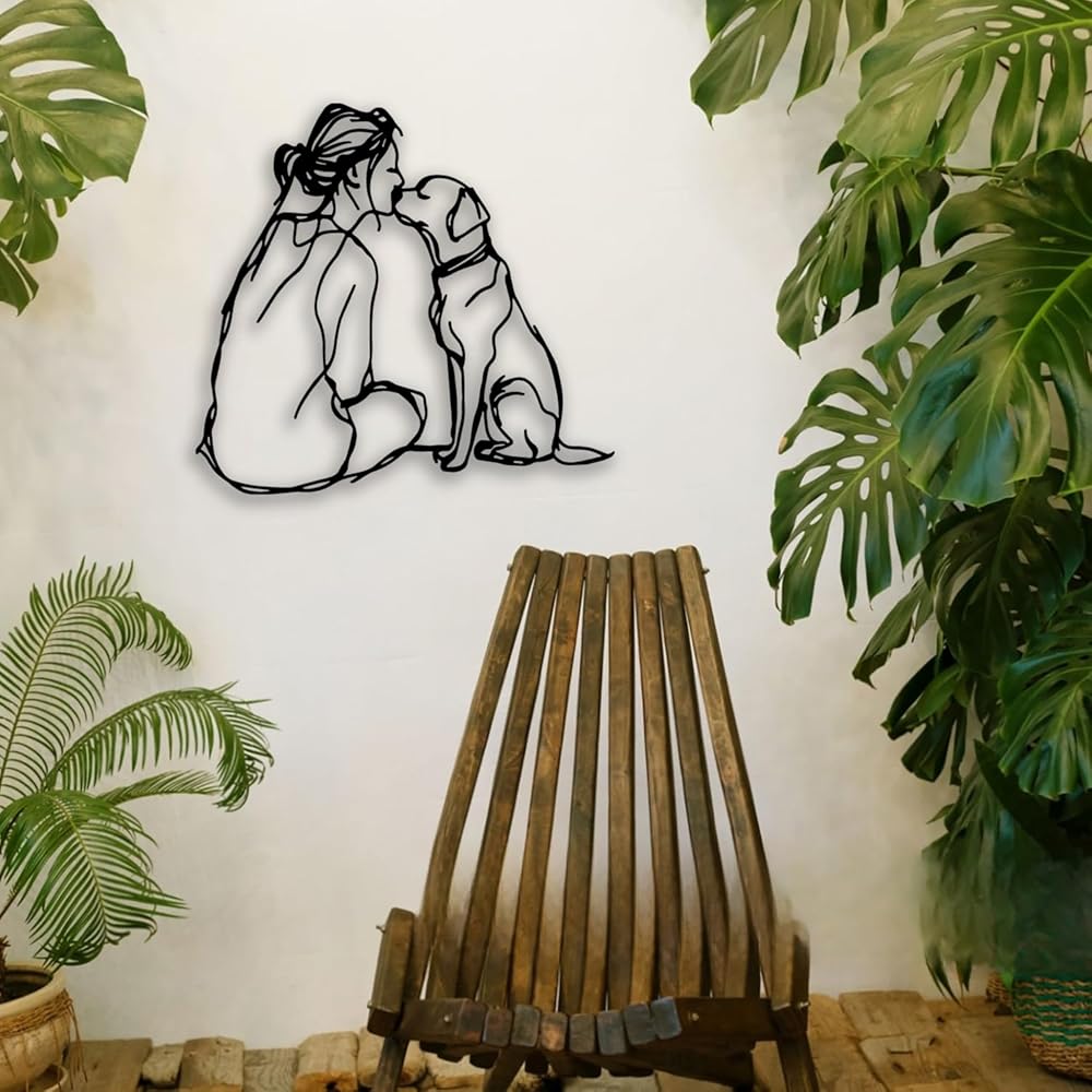 【Pet Art Design】This metal wall art home decoration, with black Woman Dog outline design, will enhance the atmosphere of your space and add decorative effects and unique artistic atmosphere to your home.