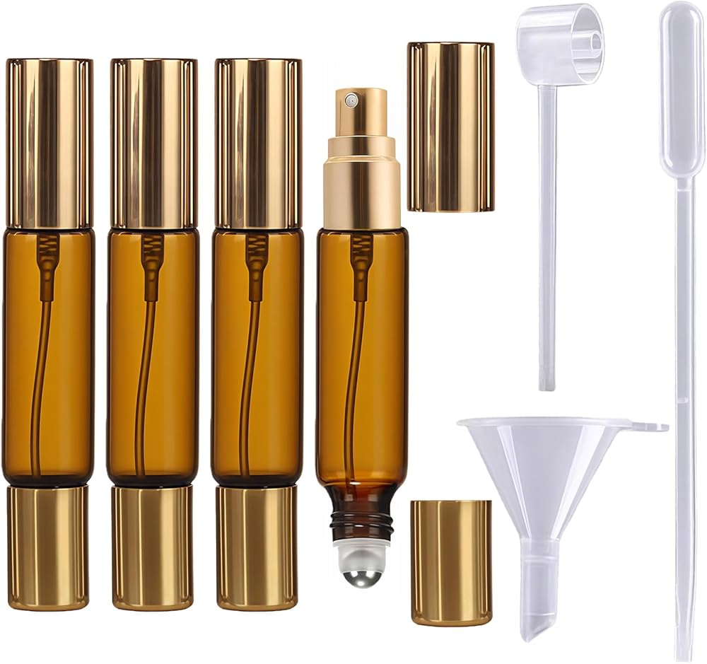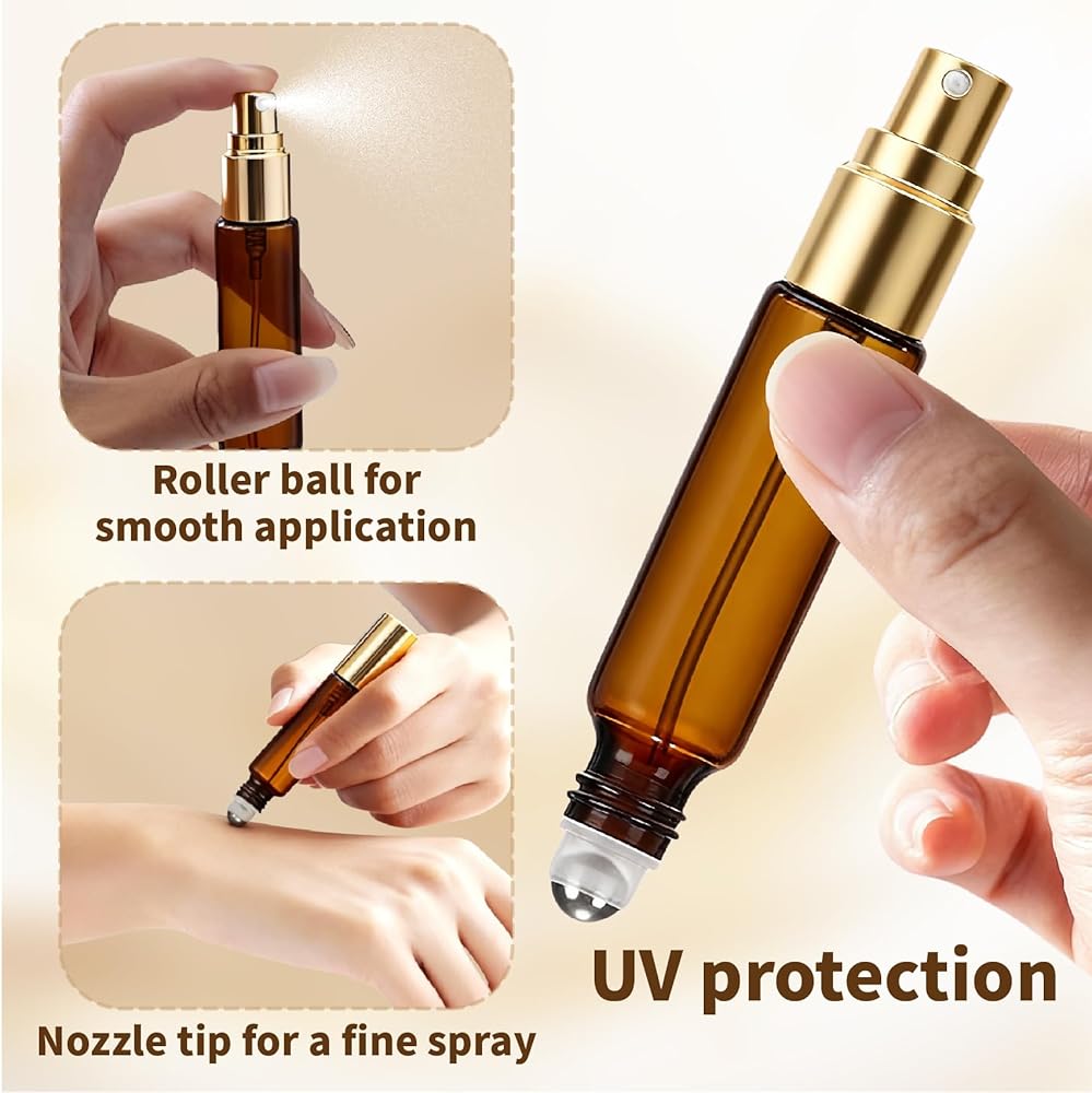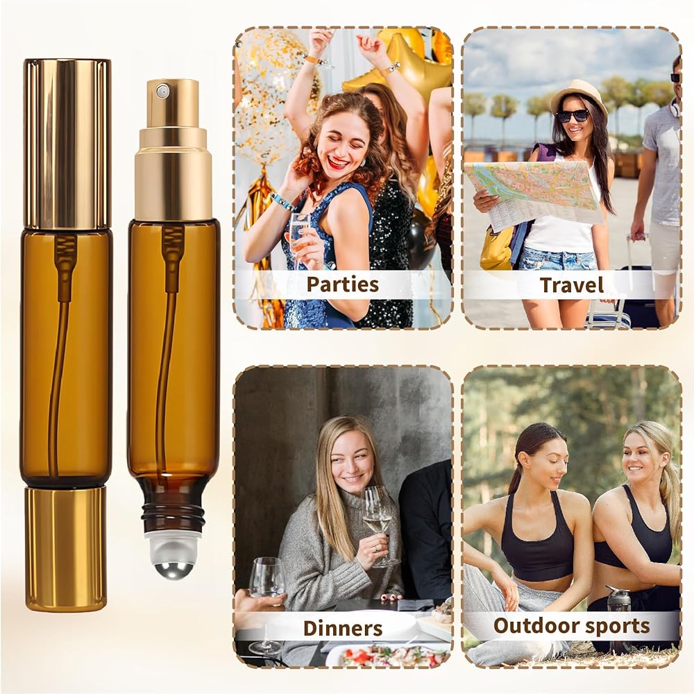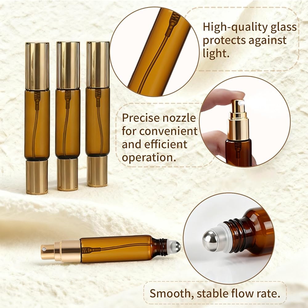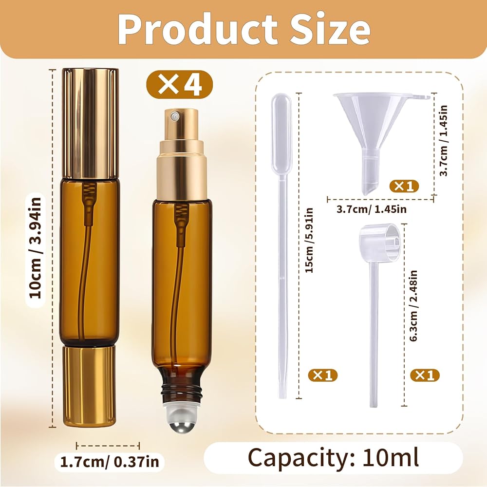 4-Pack Leakproof & Portable Travel Essential: Enjoy peace of mind on the go. Each 10ml amber bottle is engineered for secure, spill-free travel, making it an indispensable atomizer for your daily commute or adventures