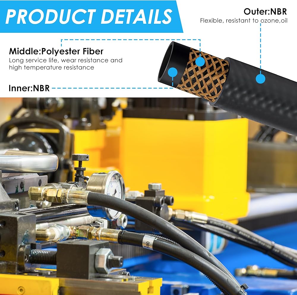 High Performance & Durability: This hose is made of high quality nitrile rubber (NBR) and polyester braided with a wall thickness of 3mm to ensure flexibility, durability and resilience. With a working pressure of 300 PSI, professional oil resistant 20BAR maximum working pressure, and a burst pressure of 60BAR, it can perform well in extreme conditions. It can withstand a temperature range of -22°F to 220°F