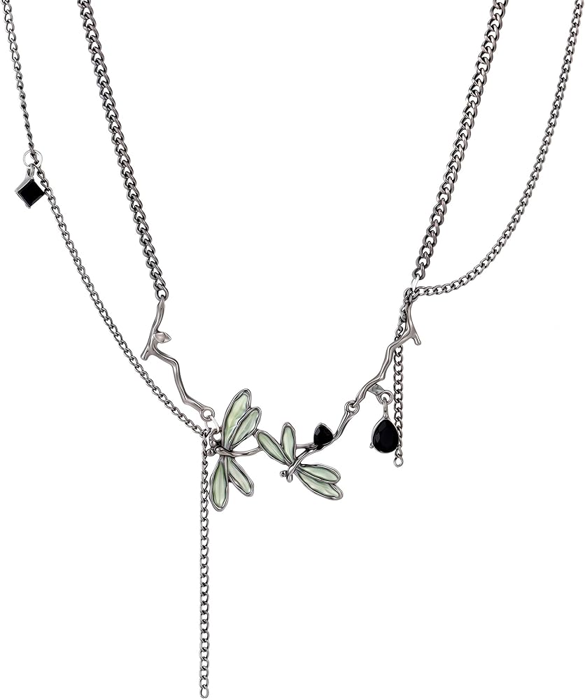 Elevate your accessory game with these Dragonfly Necklaces that are a must-have for women. The double-layered chain design adds dimension and style to any outfit, while the fringe detail gives these necklaces a whimsical fairycore touch. Embrace your inner emo with the gothic vibes of these necklaces, perfect for channeling y2k fashion trends. Whether you're looking for a cool and edgy accessory or a statement piece to complete your look, these Dragonfly Necklaces are the perfect choice. Add a touch of flair to your ensemble with these trendy choker necklaces that are versatile and chic. Stand out from the crowd with these stylish Dragonfly Necklaces that are sure to turn heads and elevate your style game.