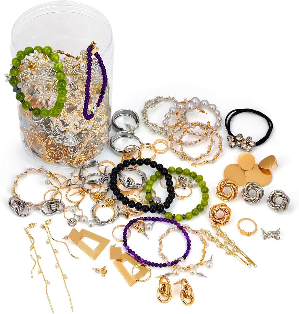 Mystery Jewelry Jar Bundle for Women, Jewelry Box 45-55 Piece Surprise Box, Gift Set Multi Style of Earrings Rings Hair accessories Bracelets, Unique Birthday Party Wedding Gift