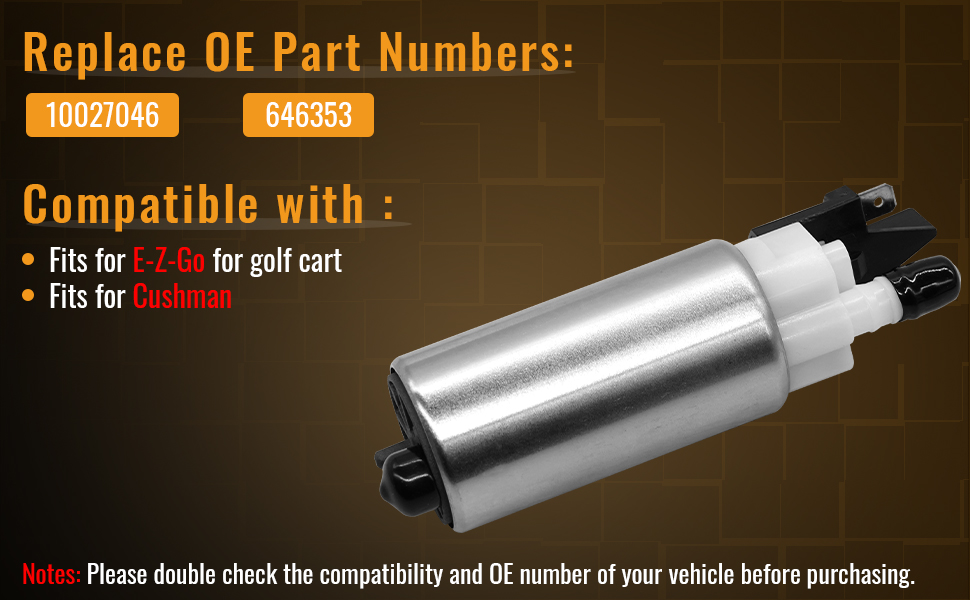 10027046 646353 Fuel Pump Fits for: Compatible with E-Z-Go and Cushman