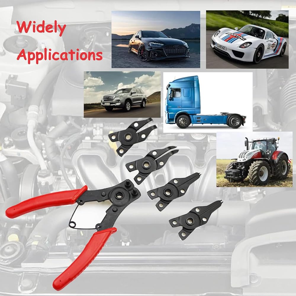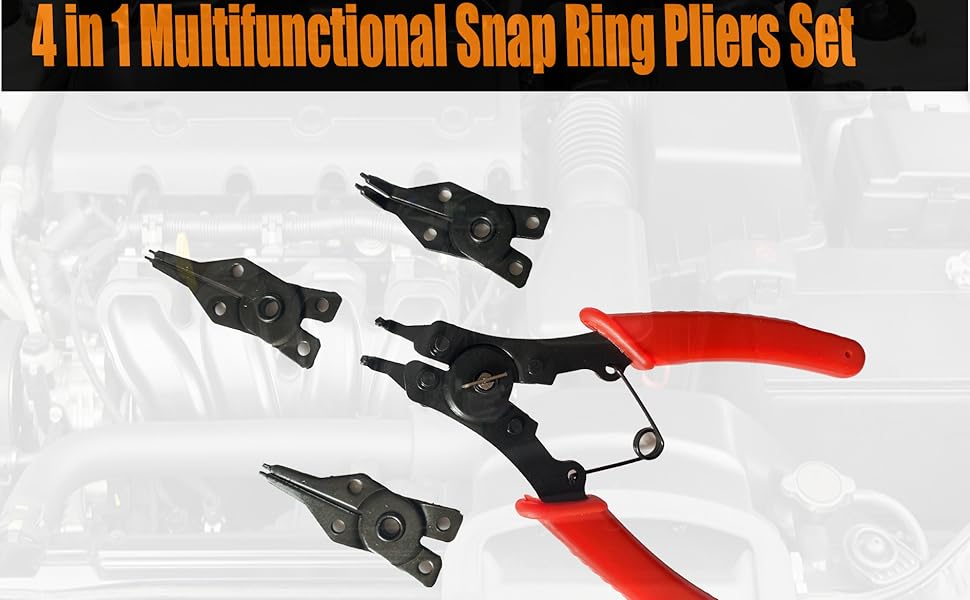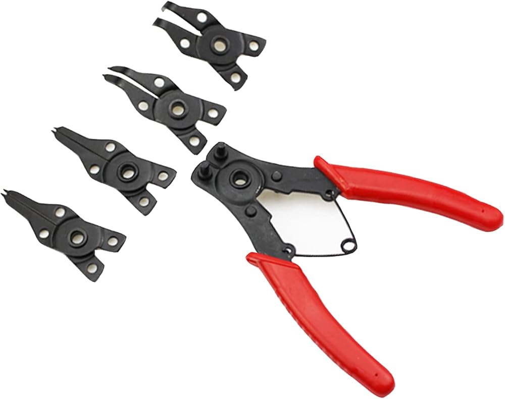 4 in 1 Multifunctional Snap Ring Pliers Set Convertible Snap Ring Pliers with 3PCS Interchangeable Jaw Head Clip Pliers Set 45°, 90° & 180° Angled Jaws for Auto and Engine Repairing(RED)