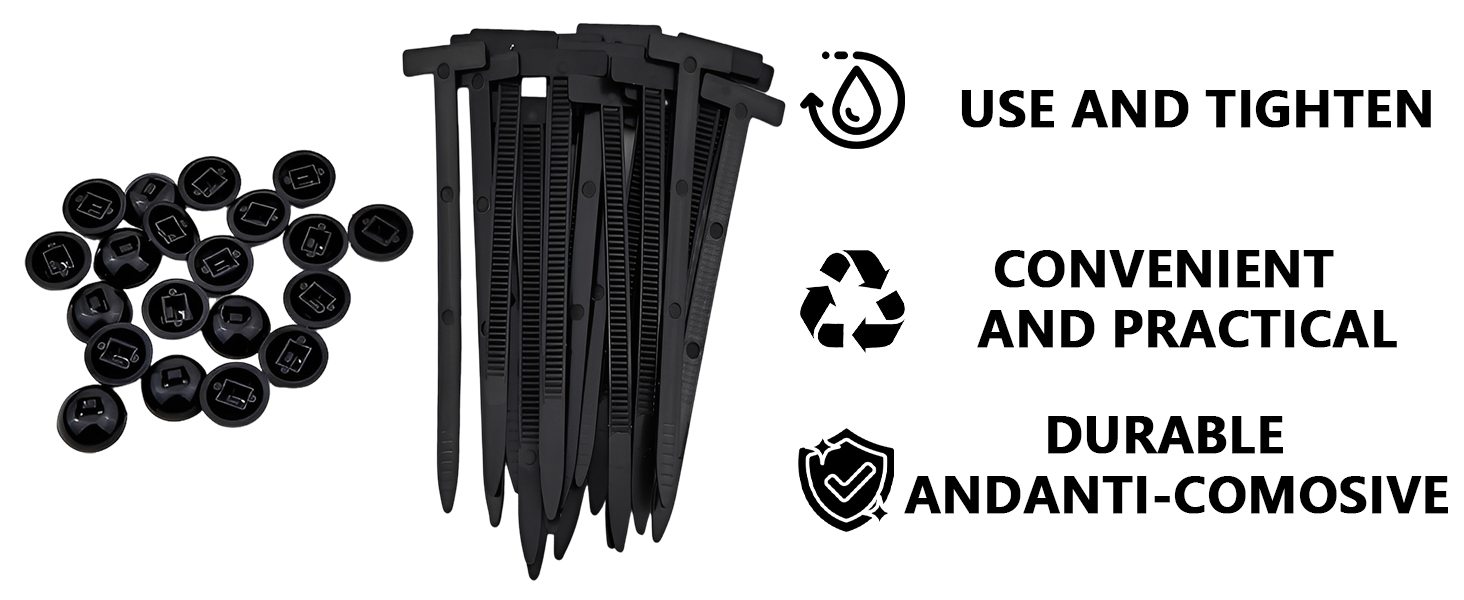 【Secure Self-Locking Design】 Built with a pin & button snap-fit structure, this cable tie buckle locks tightly once installed, creating a strong, rivet-like hold. The anti-slip teeth prevent loosening from vibration, making it reliable for daily driving and rough road conditions.