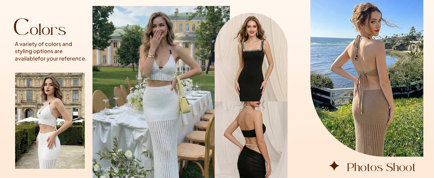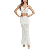 【Chic Boho Crochet Design】: Elevate your summer style with this Hand-Crochet set featuring exquisite Hollow Out patterns and delicate Beading for a sophisticated Boho look.