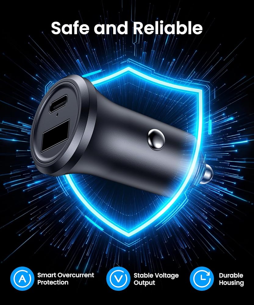 Safe and Reliable Car Charger Adapter:This charger adapter integrates smart overcurrent protection, a fire resistant shell, and stable voltage output to ensure safe and consistent power. It limits excess current to protect your devices, while the durable housing and steady power keep your electronics charged securely on every trip