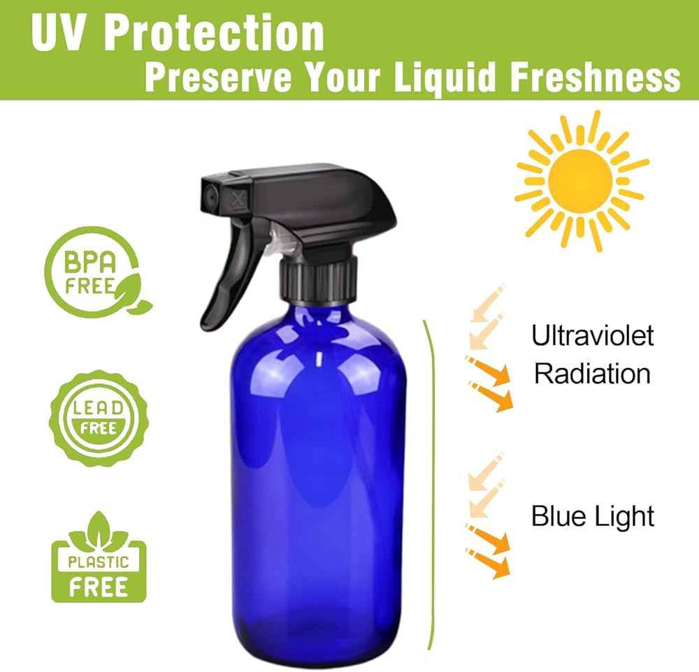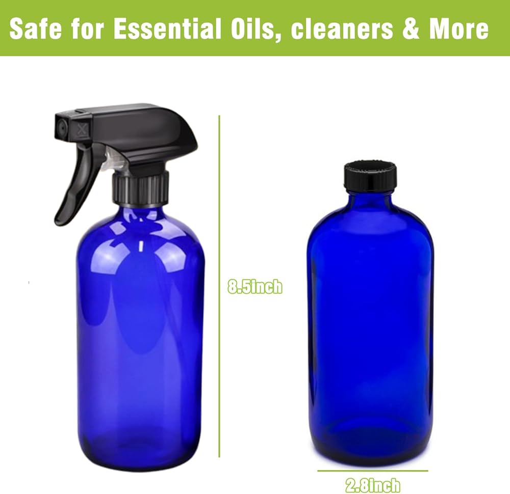 ✅ Complete Kit for DIY Enthusiasts:Includes 2x16oz blue glass bottles, 2x leakproof nozzles, 2x black caps, 1x dropper, 1x funnel, and 4x waterproof labels – everything for mixing, labeling, and storing liquids safely.