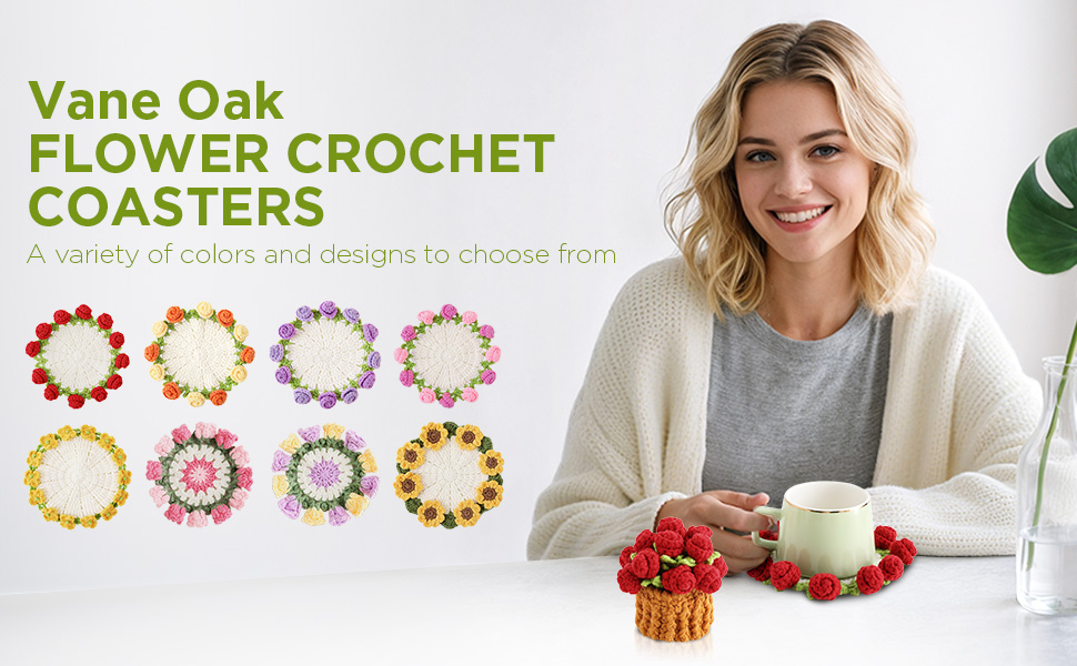 Material: Our bouquet crochet coaster is hand-crocheted with premium yarn to ensure softness and durability for long-term use