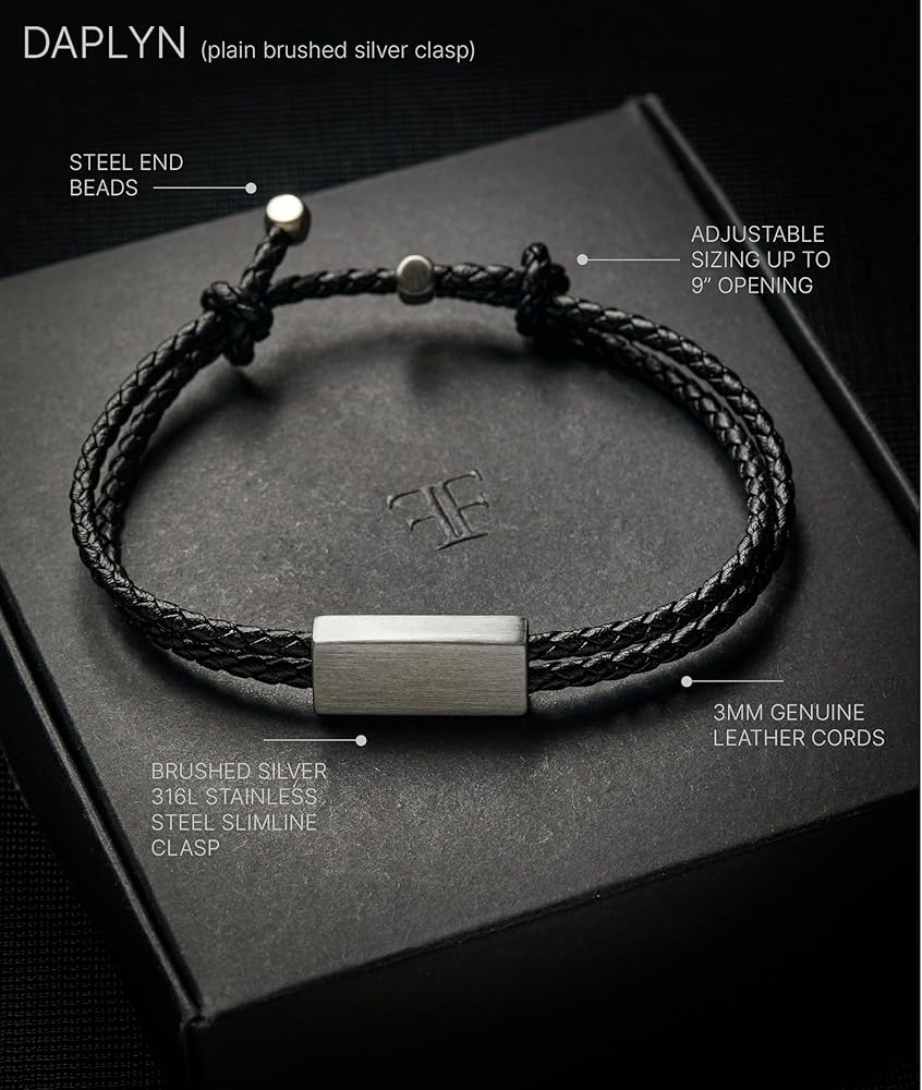 ☑️ INTRODUCING THE FORGE & FOUNDRY ADJUSTABLE LEATHER BRACELET - Genuine black leather adjustable bracelet with a brushed black 316L stainless steel sliding clasp. Discretely engraved with our signature stamp on the clasp underside. [FULLY ADJUSTABLE SIZE].