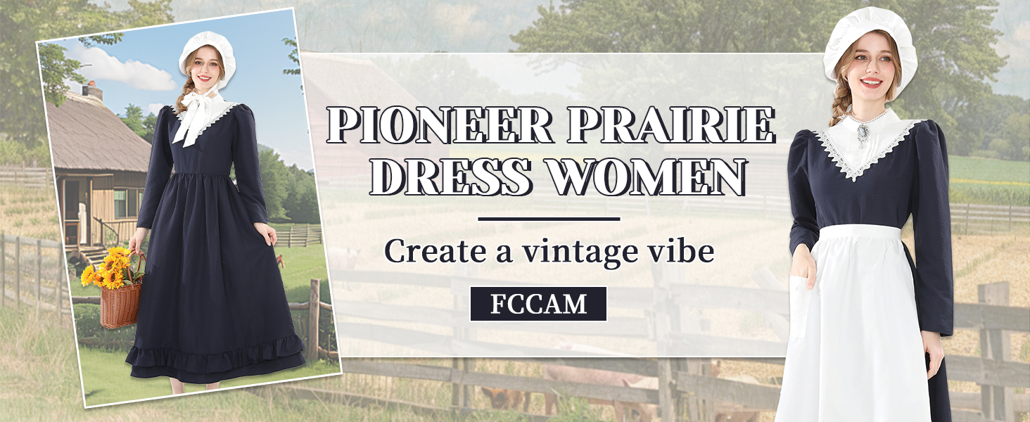 【Material】The women prairie costume is made of 80% polyester and 20% cotton. Not easy to wrinkle, not see-through, skin-friendly and comfortable. Machine wash. Hang to dry