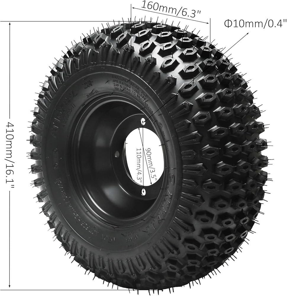 Includes 13x4.10-6 tubeless tires on 6 inch rims, offering improved puncture resistance, steering responsiveness and versatile traction across asphalt and dirt surfaces.