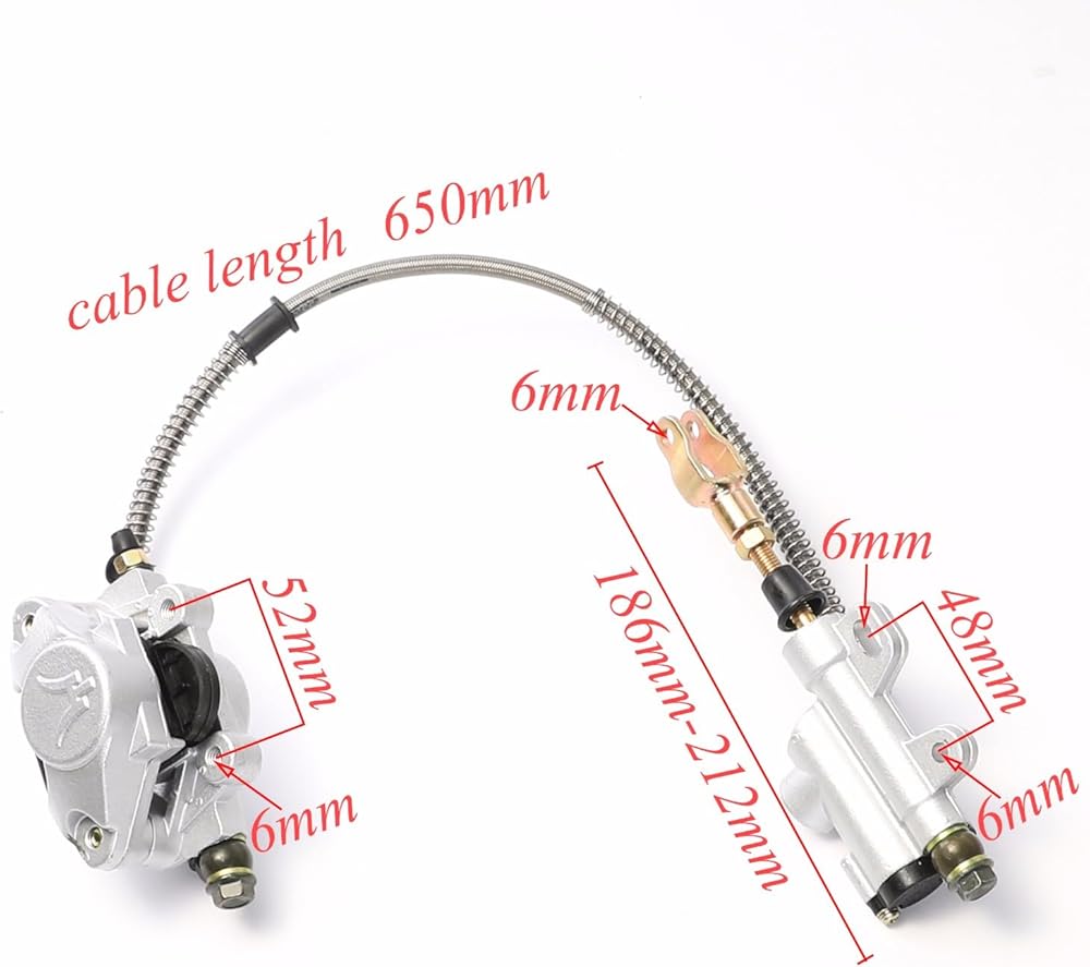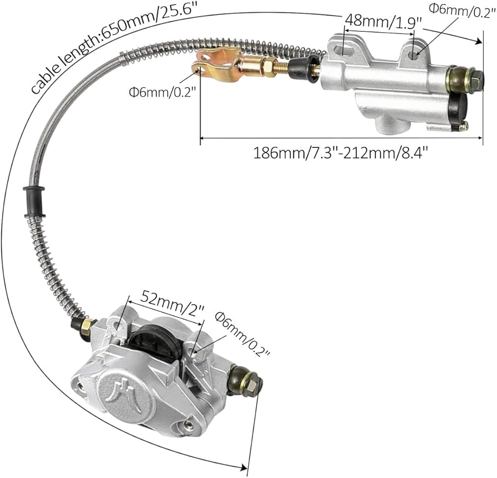 Complete brake assembly features a 7.5 inch (190 mm) rotor and master cylinder for controlled stopping power and brake cooling during repetitive deceleration.