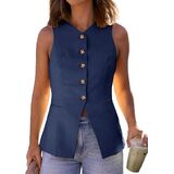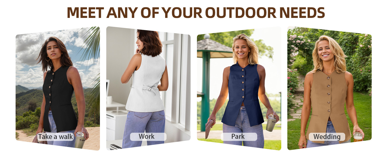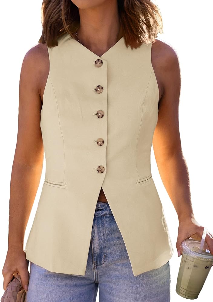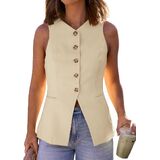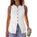 【Sophisticated Design】Business-chic sleeveless vest featuring elongated silhouette, V-neckline, functional button-down front, and two practical pockets. Ideal for professional settings while maintaining summer comfort.