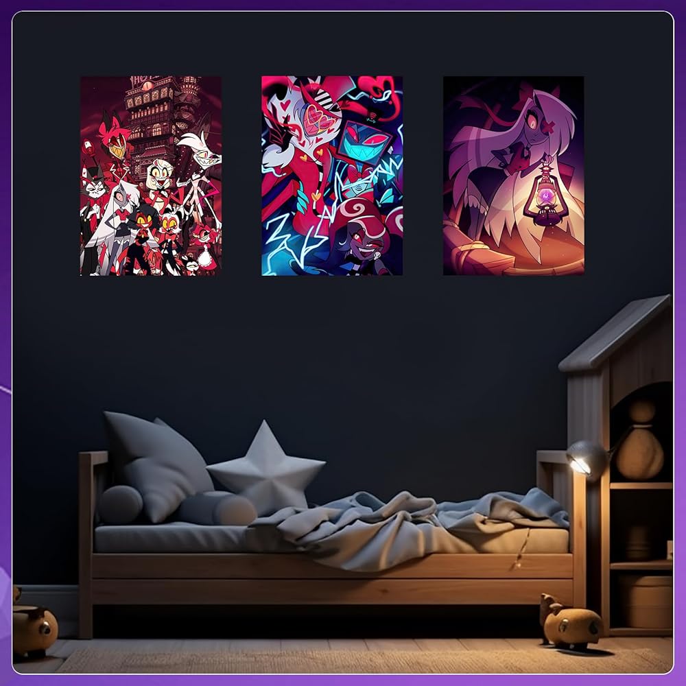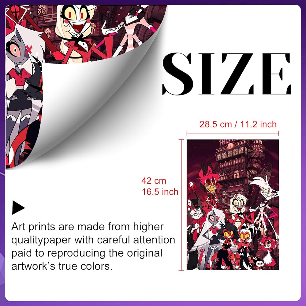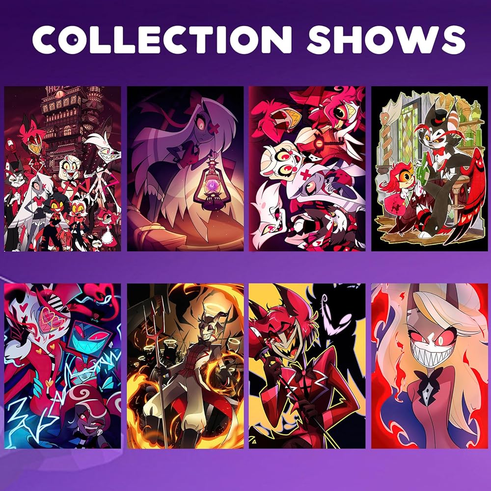 Pounchi Hotel Cartoon Posters (8 Pcs with Glue Dots) 11.2" x 16.5" Cartoon HD Printing Poster Unframed Version for Room Bedroom Club Wall Art Decor for Teens