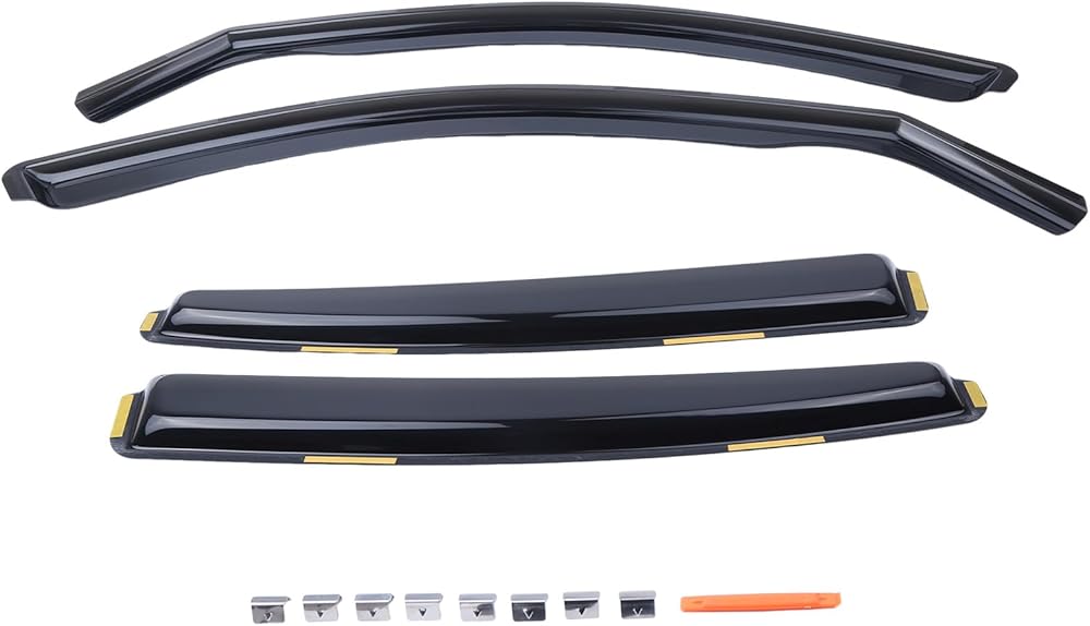 Easy installation: the wind deflectors are designed with adhesive tape design, just slip it onto your car's window, no-drilling required, easy in-channel installation, hassle-free to set up, saving you time and effort. This is a set of 4 vent visors for the side windows of your vehicle.
