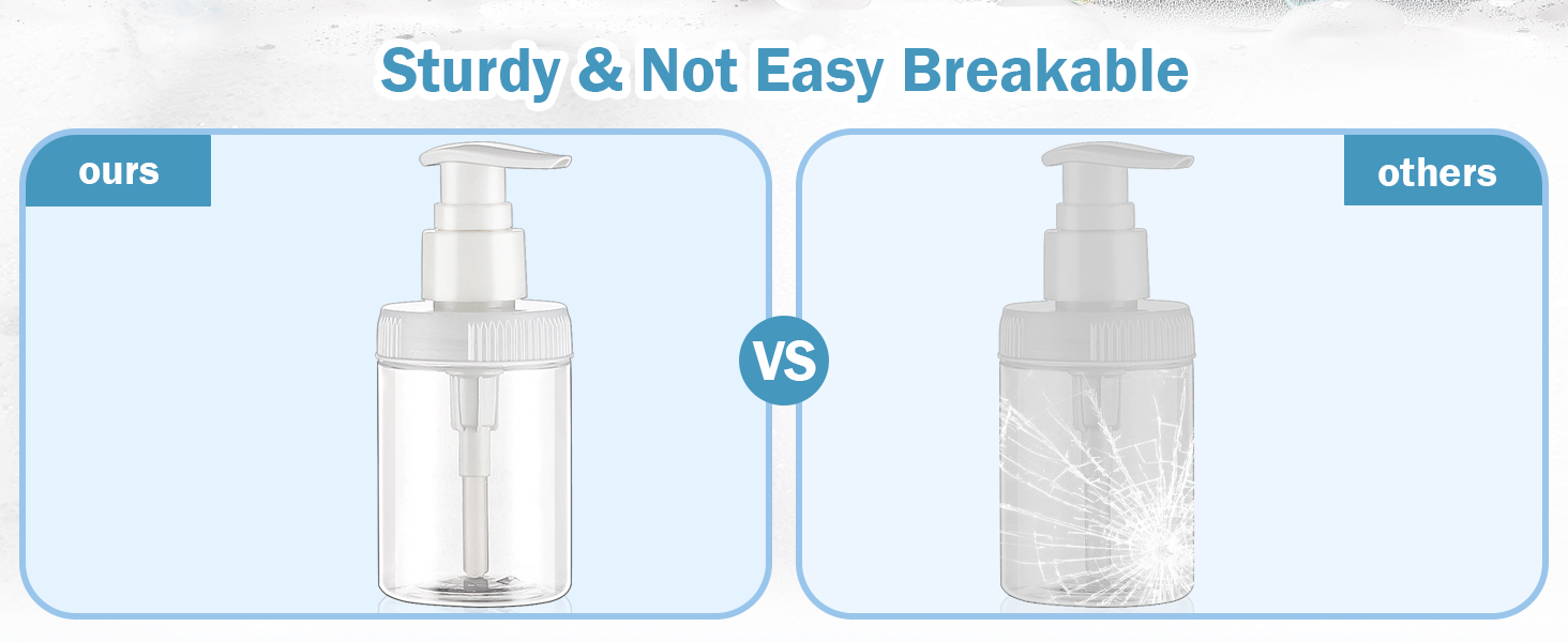 Leaking Proof: Soap dispenser for bathroom with a tight leak-proof bottle neck design, it keeps your shampoo or other liquids secure, easy to assemble and refilling. Open pump head counterclockwise, turn off pump head clockwise. You can easily lock the pump head to leakproof when traveling.