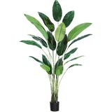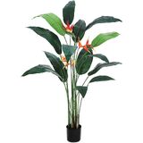 Realistic Bird of Paradise Plant: 6 ft artificial plant features a sculptural PE trunk and 14 leaves 3 flowers, capturing the natural texture and vibrant color of real banana leaves—perfect for bringing tropical charm to any home or office.