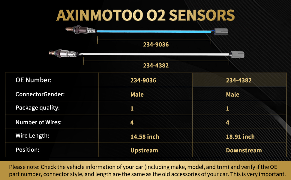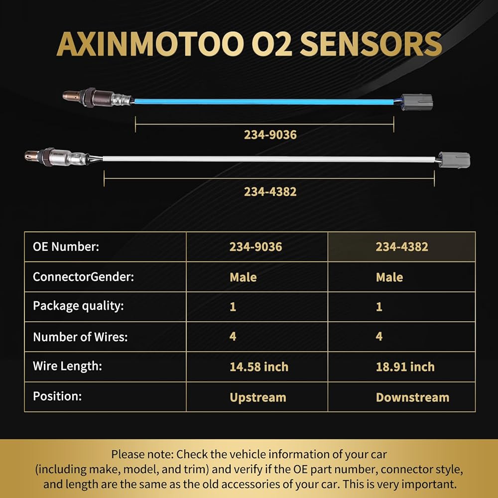 Premium Usage: A faulty oxygen sensor can trigger a string of issues, including a drastic drop in vehicle power performance, increased fuel consumption caused by incomplete fuel combustion, higher running costs, accelerated carbon deposit buildup in the engine, and the risk of the malfunction indicator lamp illuminating. The AXINMOTOO oxygen sensor effectively averts these chain failures and provides dependable shield for your vehicle.