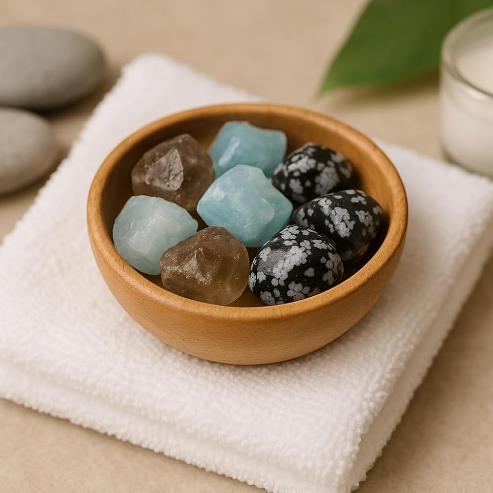 - Crystals: Aquamarine, Snowflake Obsidian, Smoky Quartz