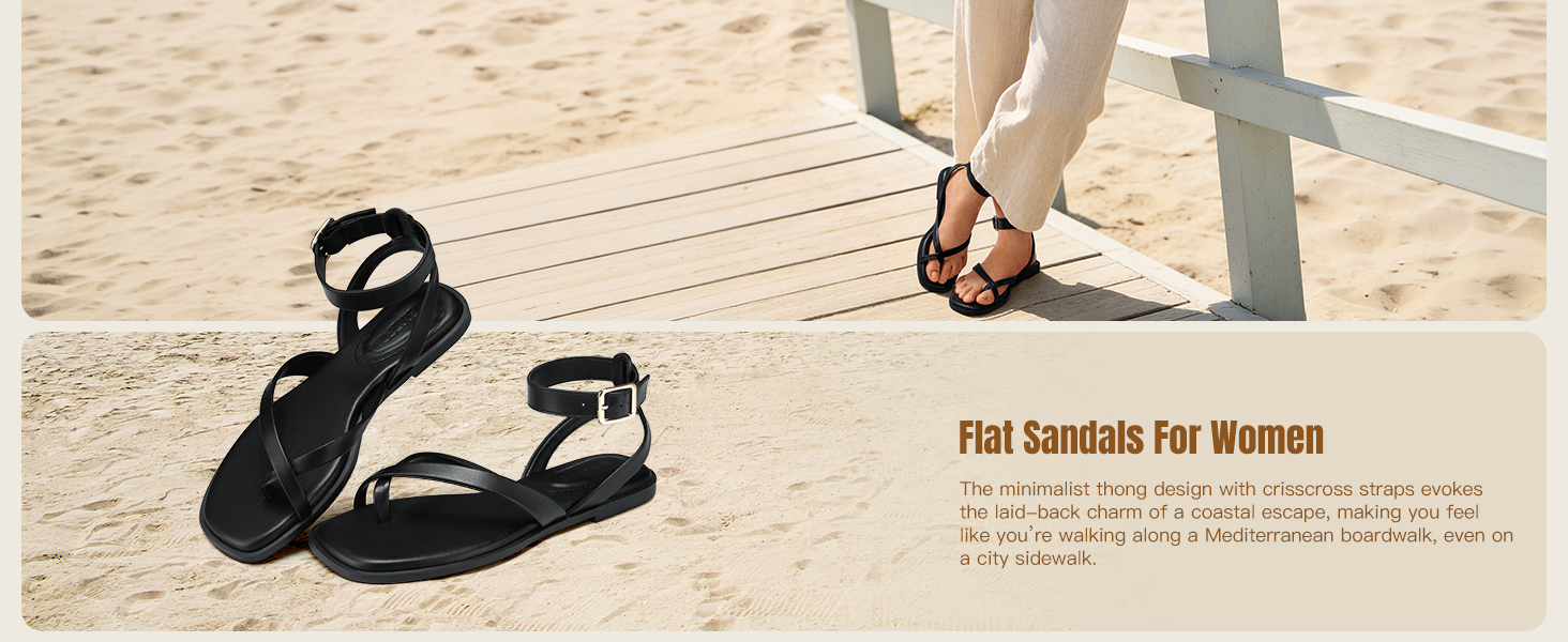 All-Day Comfort You'll Love: Designed with a flat profile that hugs your foot shape, the PU midsole offers gentle cushioning to ease pressure with every step. The adjustable ankle strap lets you customize the fit, so there's no pinching or rubbing—even after hours of wear.