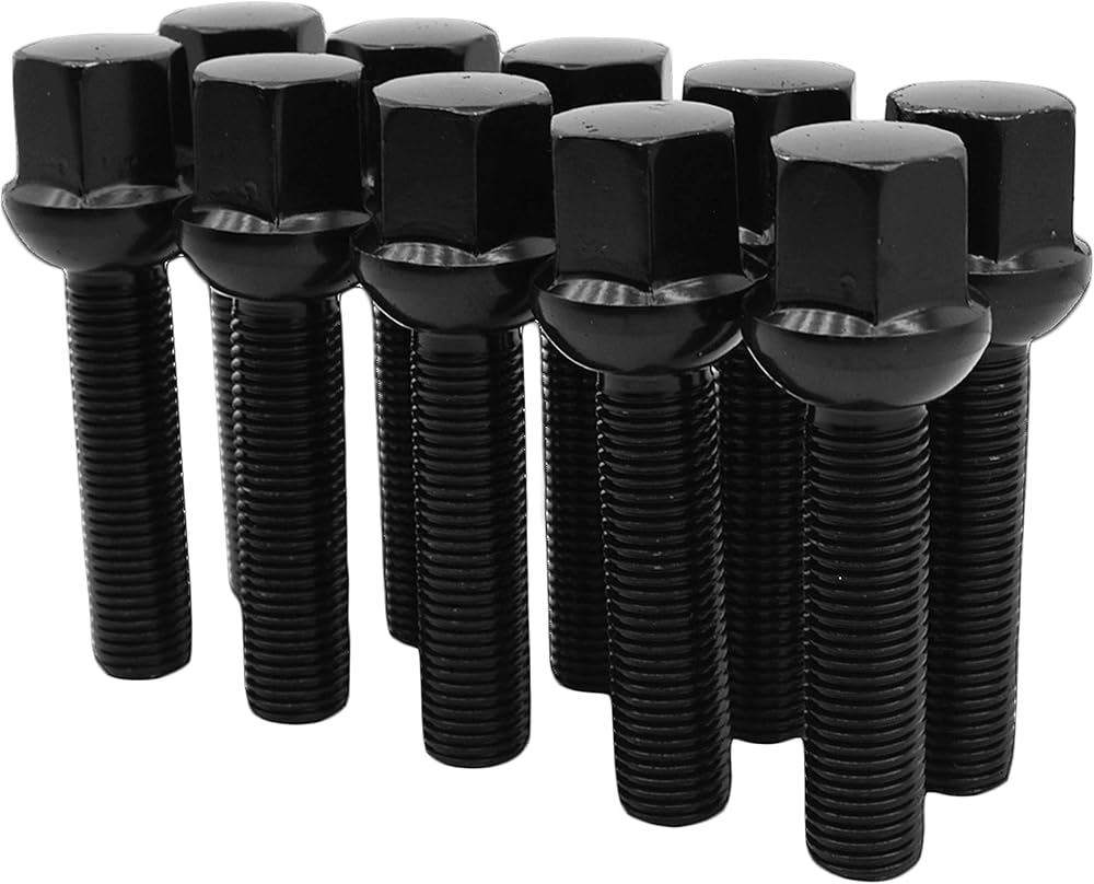 • 10 Pc 14x1.5 Black Ball Seat Lug Bolts. Works With Volkswagen Audi Mercedes Benz Porsche Vehicles With A 14x1.5 Thread Pitch