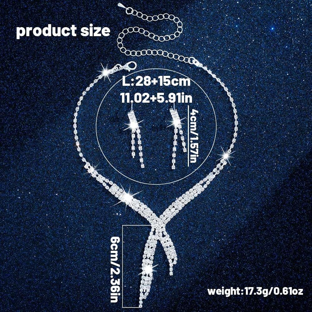 This crystal wedding jewelry set is absolutely stunning! The silver finish and sparkling crystals catch the light beautifully, adding just the right amount of glamour to any outfit. The necklace, earrings, and bracelet all match perfectly and look elegant without feeling heavy