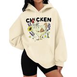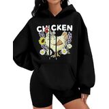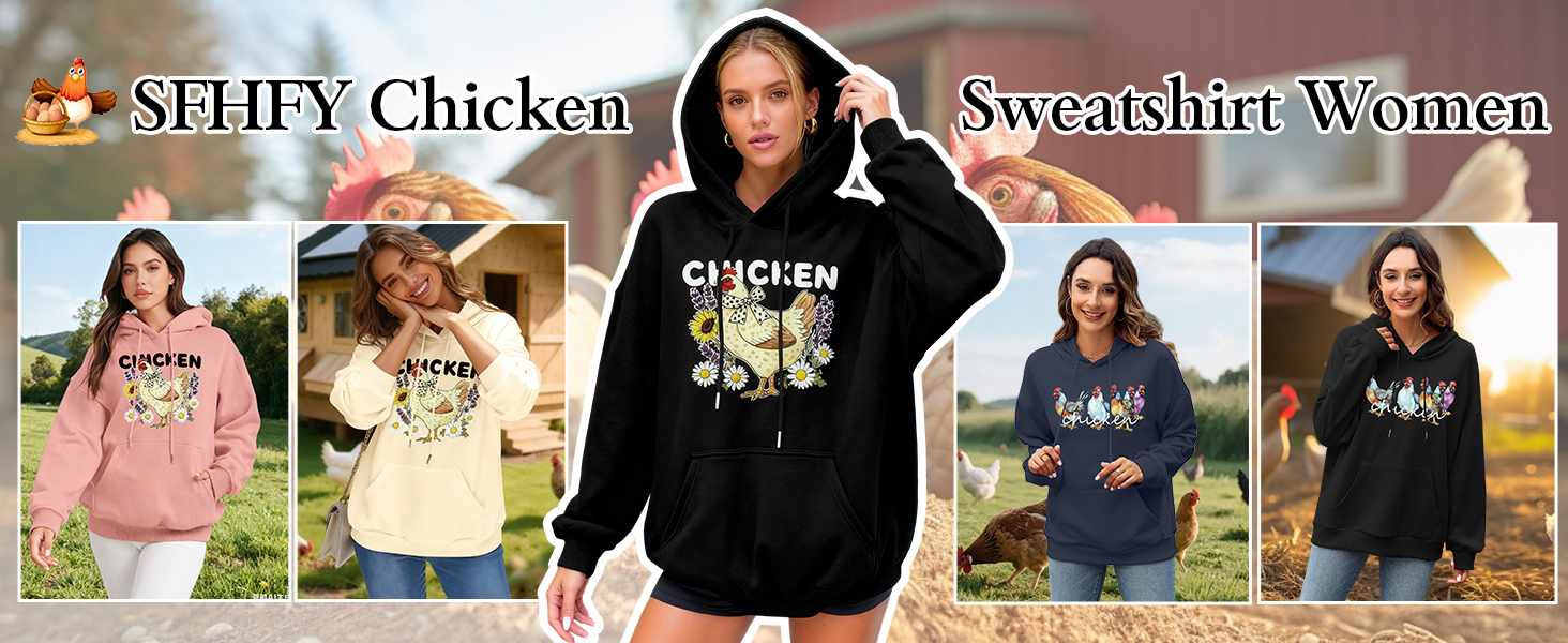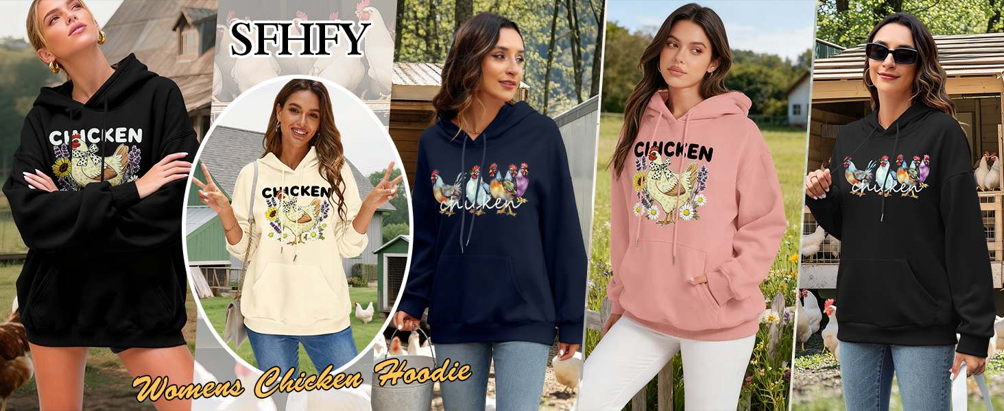 Chicken sweatshirts: Size - S=US(4-6), M=US(8-10), L=US(12-14), XL=US(16),XXL=US(18-20).Chicken lover shirt is made of cotton blend, which is comfortable and stretchable. Chicken graphic tee is provides a little stretch, not easy to shrink after washing, and support to hand wash or machine wash.