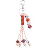 Perfect Design of Red Rope Keychain Keyring: This red rope keyring is made of pure handmade polyester weaving, the tassel tail of sport balls keyring is adorned with basketball, baseball, football, rugby, wooden bead beads and beads, football keychains are backpack bag charms for purse handbags, handbag purse accessories for women charms
