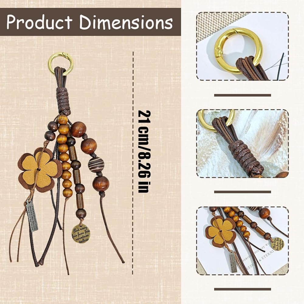 【Novel Design】This wallet pendant allows you to experience genuine bodhi wood beads, each with a unique shape and color. the unique and creative chinese appearance, bright colors, and hand-stitched leather flowers make your bag look more novel and eye-catching