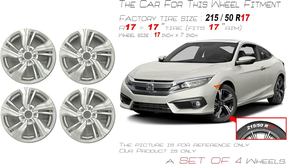 ✓ Rim Brand: Velospinner ✓ MPN: 42700TBAA81, 42700TBAA82 ✓ Diameter: 17 INCH ✓ Width: 7 INCH ✓ Offset: 45 mm ✓ Center Bore: 64.1 mm ✓ Bolt Pattern: 114.3 mm ✓ Lug Nuts Holes: 5 lug ✓ Finish: SILVER ✓ Material: Aluminum ✓ Quantity: One (1) ✓ This part will fit these makes and models with these options: ✓ CIVIC 2016-2021 17x7 (alloy), factory installed, Touring (Canada market) ✓ Tested to meet OEM specs and standards. Each of our wheels are tested to make sure they meet load capacity, side impact as well as lateral and radial run out. These are brand new never mounted, repaired, cracked, welded, nor used wheels. ✓ CONDITION: NEW REPLACEMENT ✓ Not Included: Center Caps, Emblems, Lug Nuts, TPMS, Tire ✓ OEM Tire Size: 215/50R17