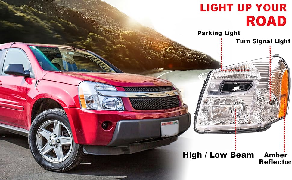 【Product Specification】: Housing Color: Chrome | Lens Color: Amber | Bulb Type: Halogen | Bulb Model: Low Beam: 9007; High Beam: 9007 | Side Marker Light: 194 Signal Light: 1156NA (NOT Included Blubs)