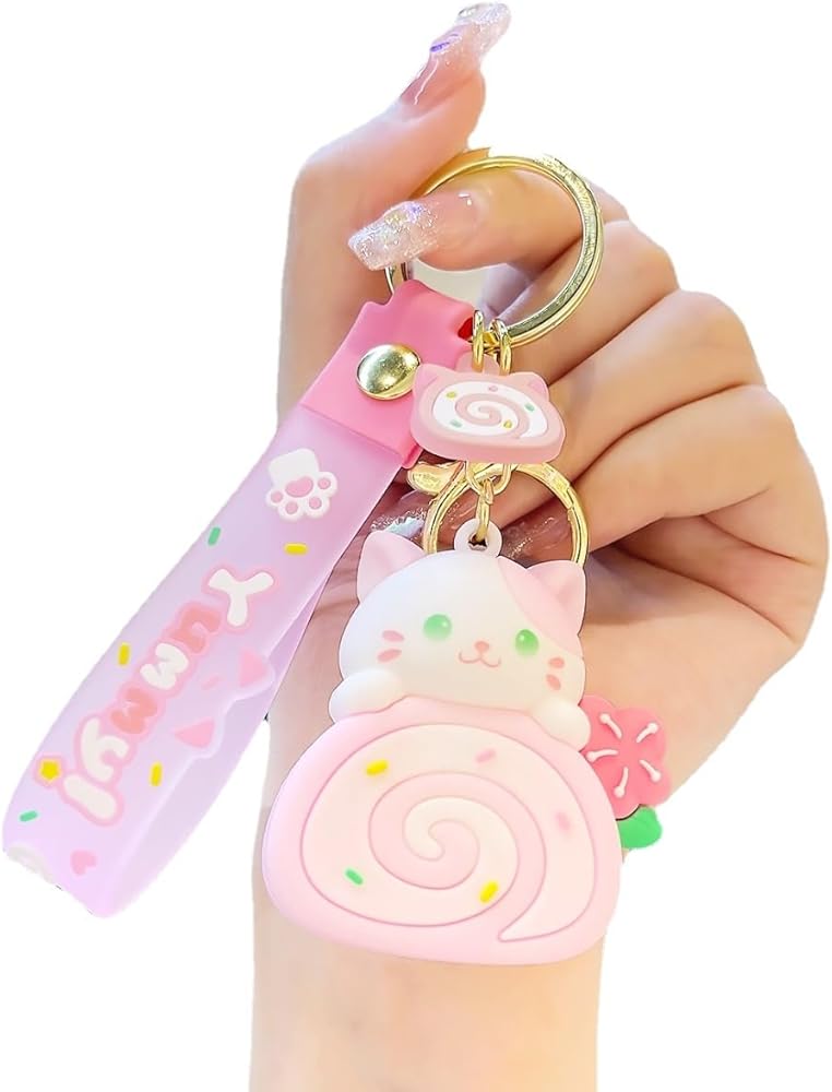 Charming Design: The kawaii holding cake happy cat design adds a super cute and interesting touch to the keychain, bringing a good mood to your everyday life. It's the perfect accessory to enhance your style.