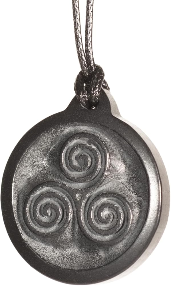 This handcrafted Triskelion Shungite Pendant brings together ancient Celtic symbolism with the natural properties of authentic Karelia shungite. The Triskelion, a timeless symbol representing motion, life cycles, and the harmony of mind, body, and spirit, is beautifully carved into genuine black shungite stone. Each pendant is individually handmade, ensuring a unique piece that carries both artistic craftsmanship and spiritual significance. Measuring 1.5 inches in diameter with a matte finish, this circular amulet hangs from an adjustable cord that extends from 12 to 26 inches, allowing you to customize the fit to your preference. The natural shungite stone is untreated, preserving its authentic character and distinctive appearance. Perfect for those drawn to Viking and Norse themes, this unisex pendant serves as a meaningful accessory for meditation, energy work, or everyday wear. Whether you're seeking a spiritual talisman or a distinctive piece of symbolic jewelry, this Triskelion pendant offers both aesthetic appeal and deeper meaning. The lightweight design at under an ounce makes it comfortable for all-day wear, while the cord clasp ensures easy adjustment and secure wearing.