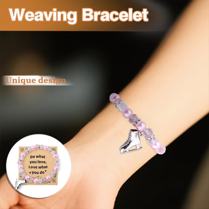 Aesthetics Ice Skating Bracelet for Women: The pink skating bracelet is designed with elastic band, fit all most wrist size, stylish skater bracelet for women adding a touch of elegance for outlook, stylish figure skating bracelet great skating team gifts for skating competitions, figure skating enthusiasts positive blessing gift
