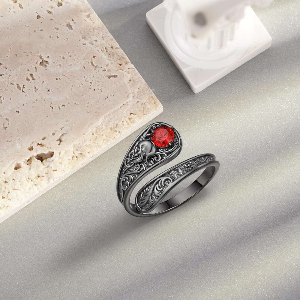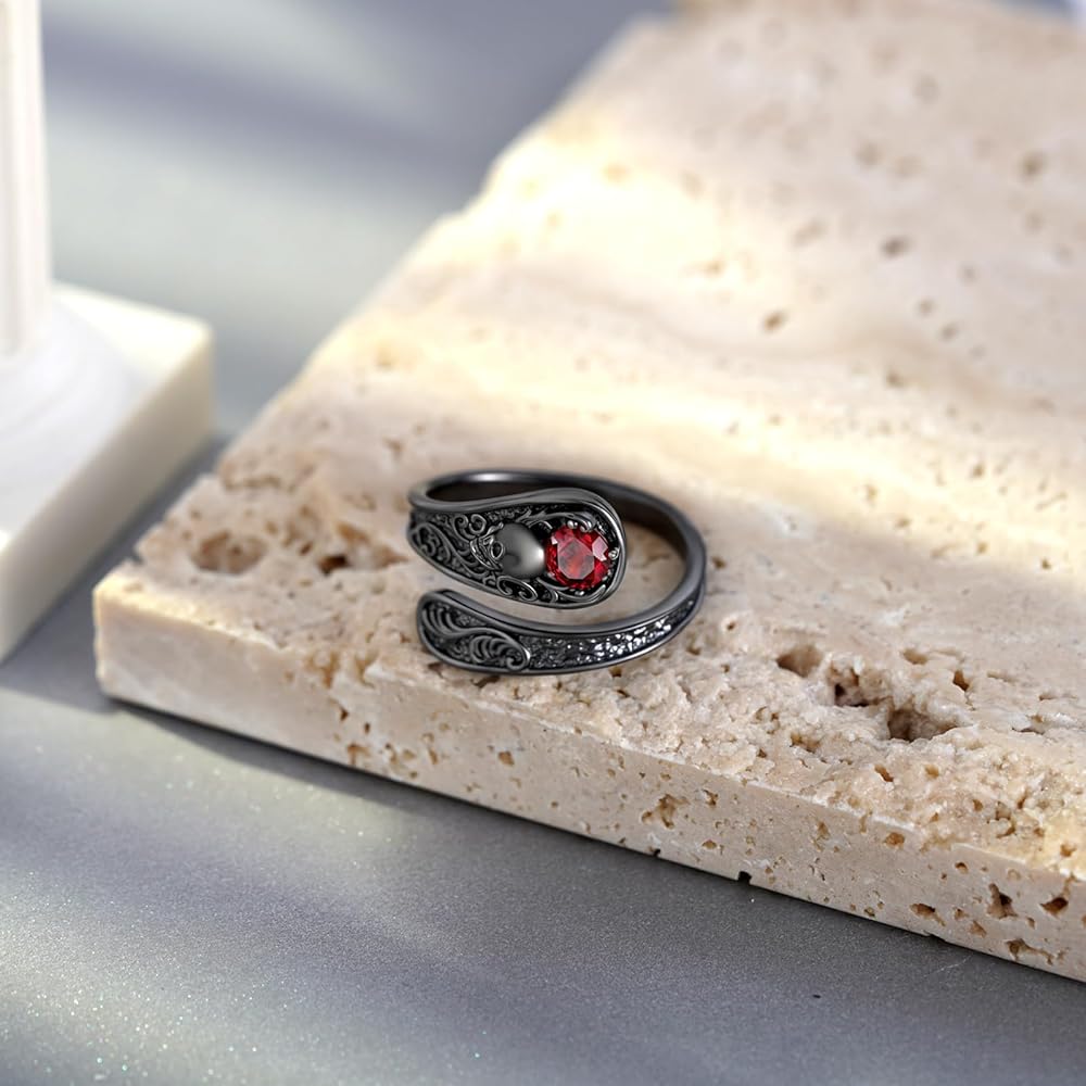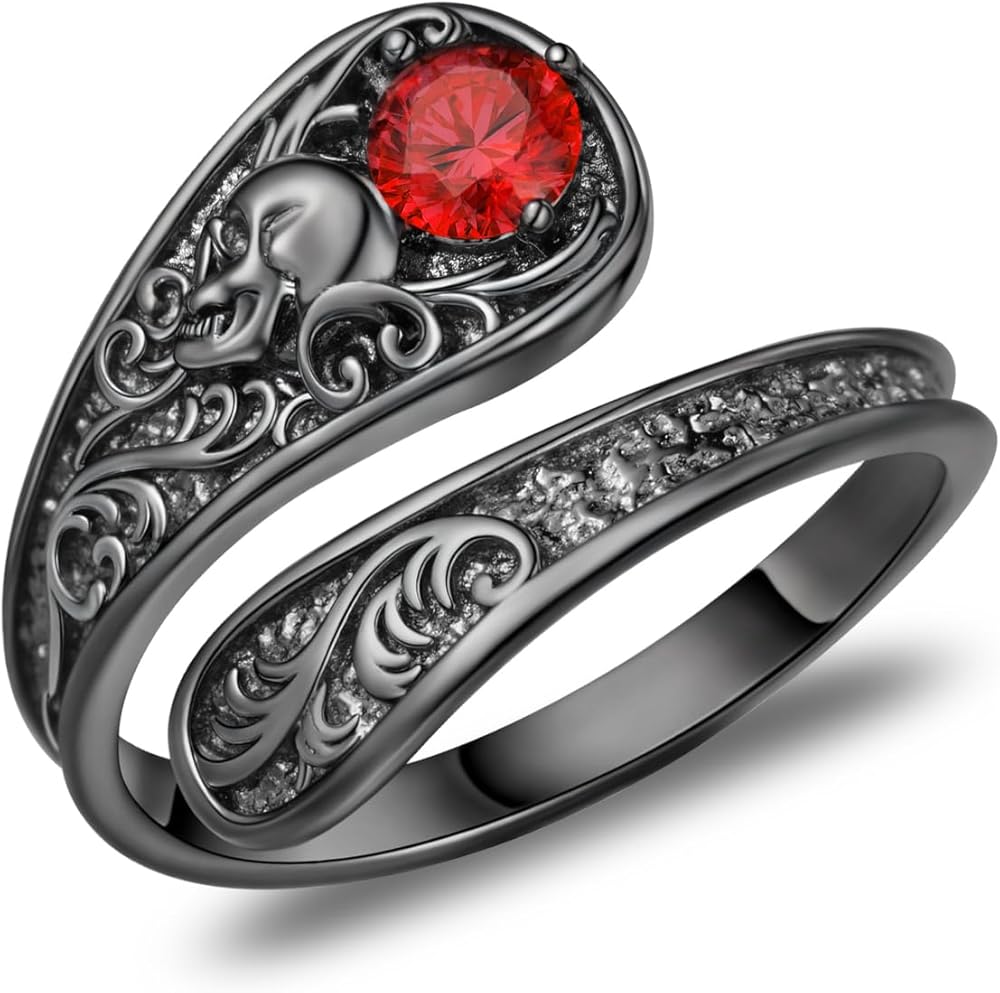 Skull Spoon Ring Size: This gothic skeleton rings for women size 7 open ring is adjustable in size.