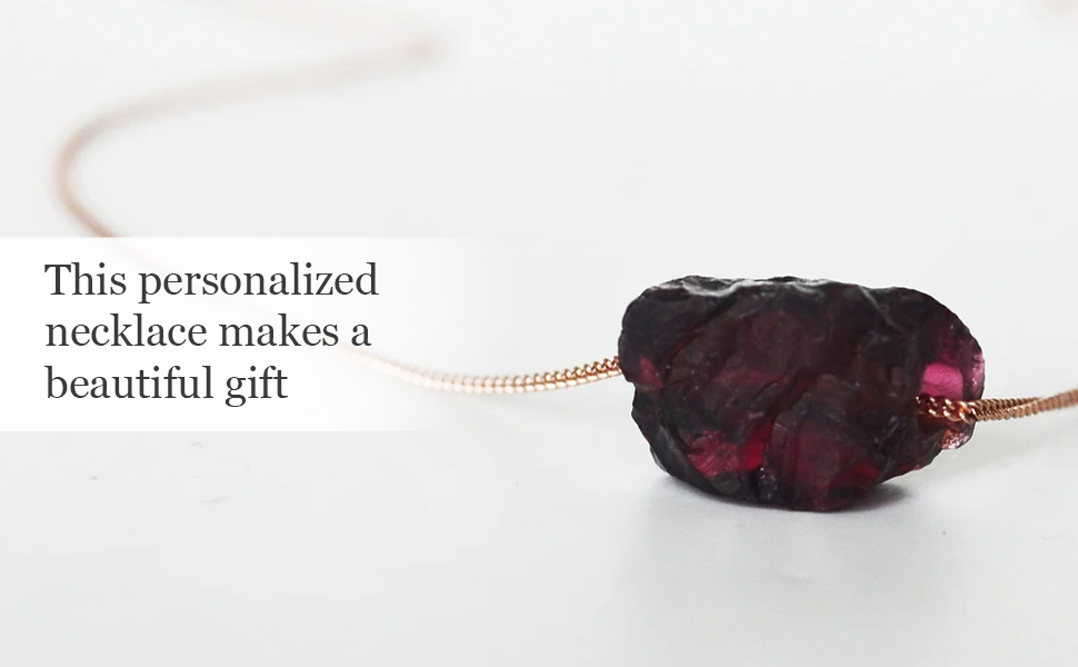 This 100% natural garnet raw stone necklace would be a perfect gift for a January birthday or for anyone who loves this stone. This is a great layering necklace! The garnet stone represents perseverance and strength and is known as a “commitment stone,” which reinforces tenacity and commitment.