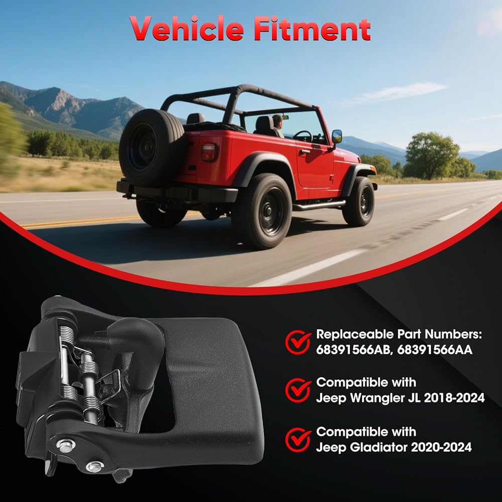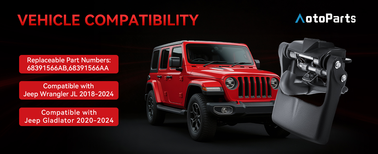 [Direct Fitment]: 68391566AB folding top latch compatible with Jeep Wrangler JL 2018 2019 2020 2021 2022 2023 2024, Gladiator 2020 2021 2022 2023 2024. Secures the folding top in place, ensuring a tight and secure fit.