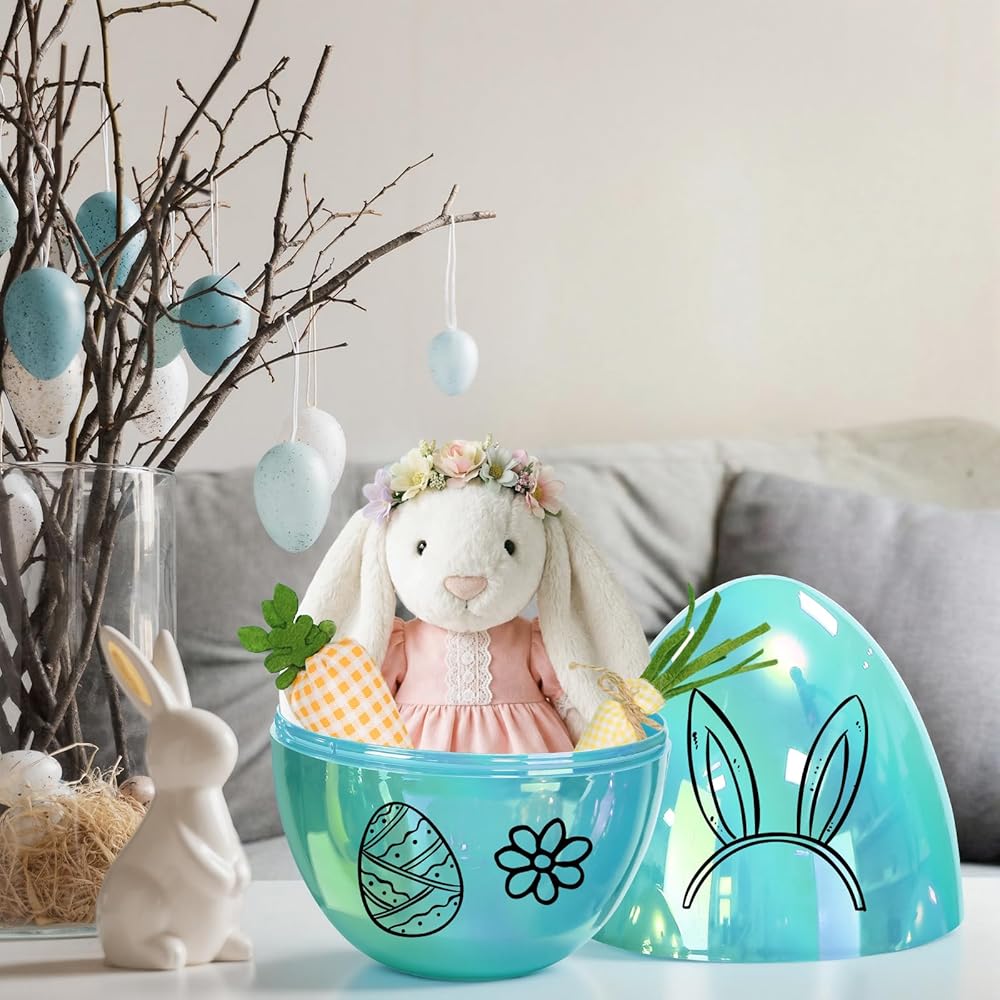 The shimmering blue hue of this Jumbo Easter Egg adds a touch of elegance and whimsy to your seasonal decor. Its captivating appearance not only enhances Easter egg hunts but also makes for a striking decorative piece at any springtime celebration.