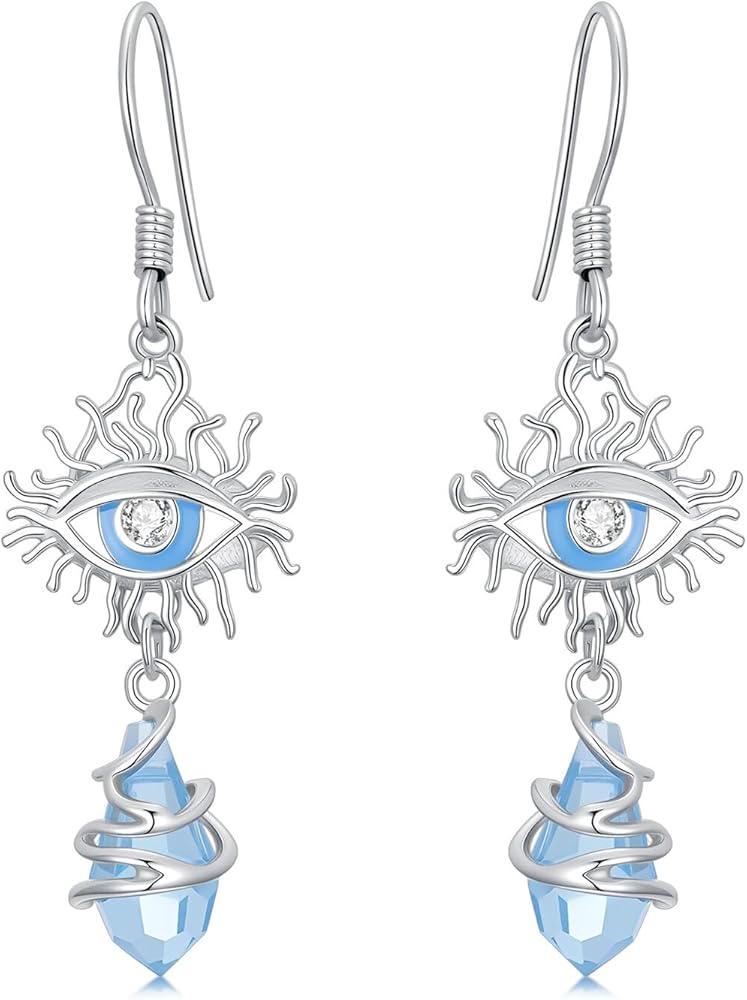 EUSJ Aquamarine Ring Vintage Blue Sterling Silver Aquamarine Oval Rings for Women Moissanite Engagement Rings for Women/Girlfriend